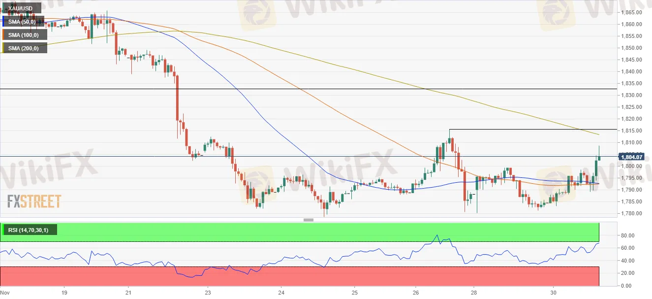 XAU/USD Technical outlook: A break above $1,807 would expose $1,815, followed by $1,834.