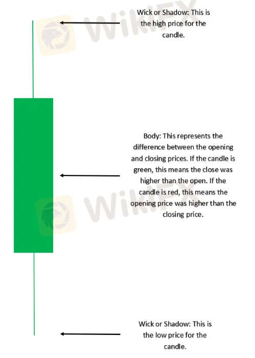 A candlestick is a single bar which represents the price movement of a particular asset for a specific time period. The information it displays includes the open, high, low and close for that time period.