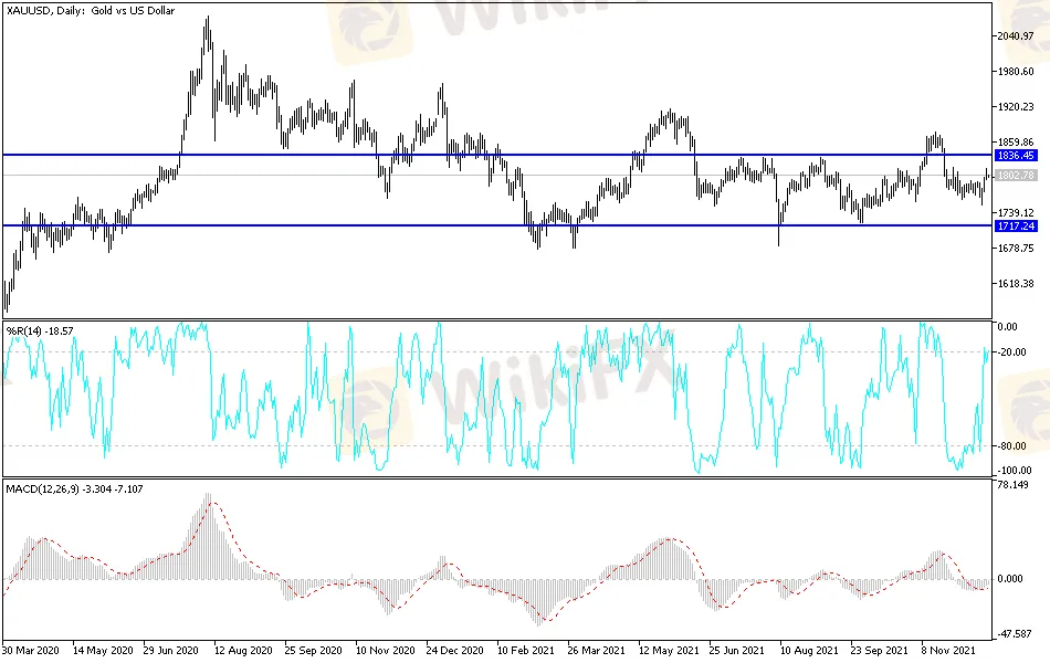 Abstract:Although the global central banks decided to tighten their monetary policies, including those who actually raised interest rates, appetite for safe havens increased amid global fears of the Omicron variant which threatens a global closure on Christmas. Accordingly, the price of gold returned to the resistance level of $1815 before closing trading around the level of $1798, with the recovery of the US dollar. Gold prices recorded a weekly rise of 1.3%, reducing its decline since the beginning of the year to date to less than 5%.