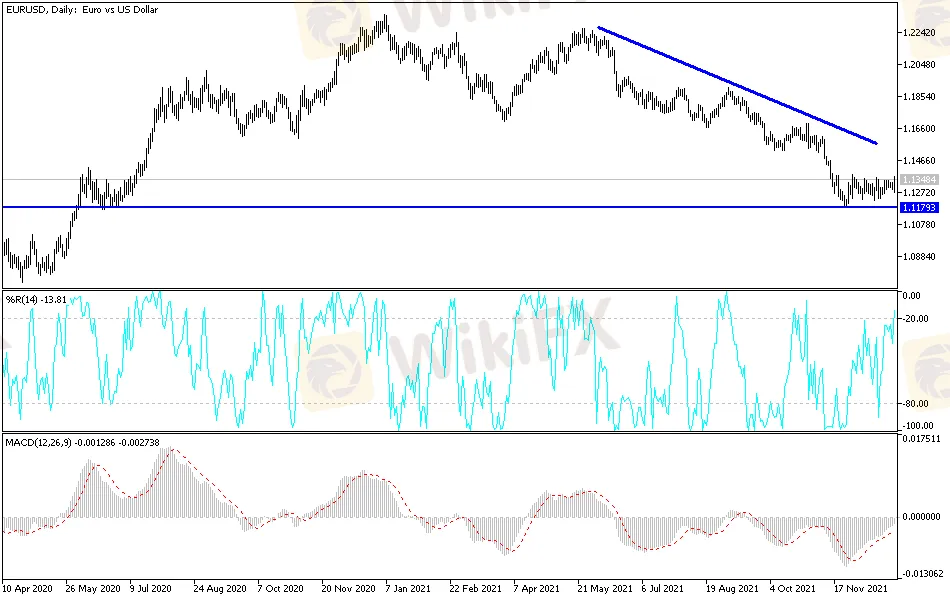 I have said that during this last week of 2021, price movements will not be stable and may lack the strong movement required for trading. In the case of the EUR/USD currency pair, for example, it fell during yesterday's trading to the 1.1273 support level, and quickly rebounded upwards to reach the 1.1368 resistance level. It is stable around the 1.1340 level at the time of writing, ahead of the announcement of the latest data affecting investor sentiment. The global financial markets, including the Forex trading market, are still watching with caution the reaction to the rapid spread of the new Corona variant, which poses a threat to the global economic recovery.