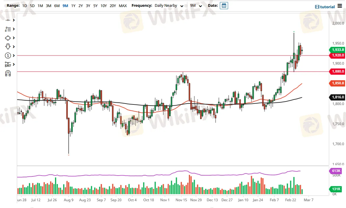 Gold markets have gapped higher to kick off the trading session on Thursday but then went back and forth as we continue to see a lot of noisy behavior. The $1920 level has been broken significantly, and now it looks like we are trying to work off some of the excesses. At this point, the market is likely to see a lot of volatility, but it is more likely than not going to be a situation where every time we pull back, the market will probably find plenty of buyers.