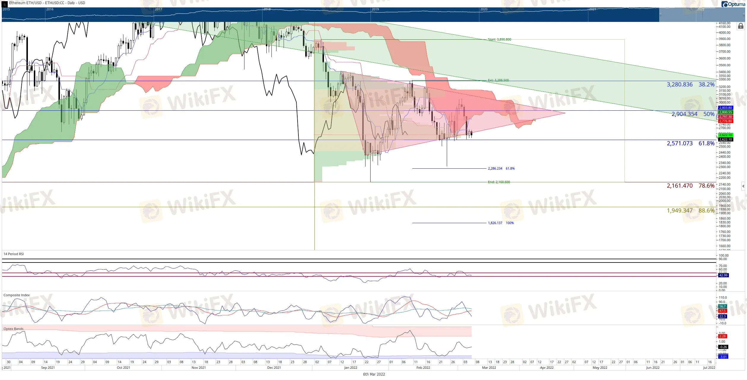 While current technicals show Ethereum price is clearly in bearish territory, some bullish signals have developed. The first is the continued support found at the 61.8% Fibonacci retracement in the $2,500 value area. Perhaps most important is shifting the 2022 Volume Point Of Control to $2,600, lending ETH some further support. However, Point Of Controls that move lower often signify broader weakness and can easily turn into strong future resistance.
