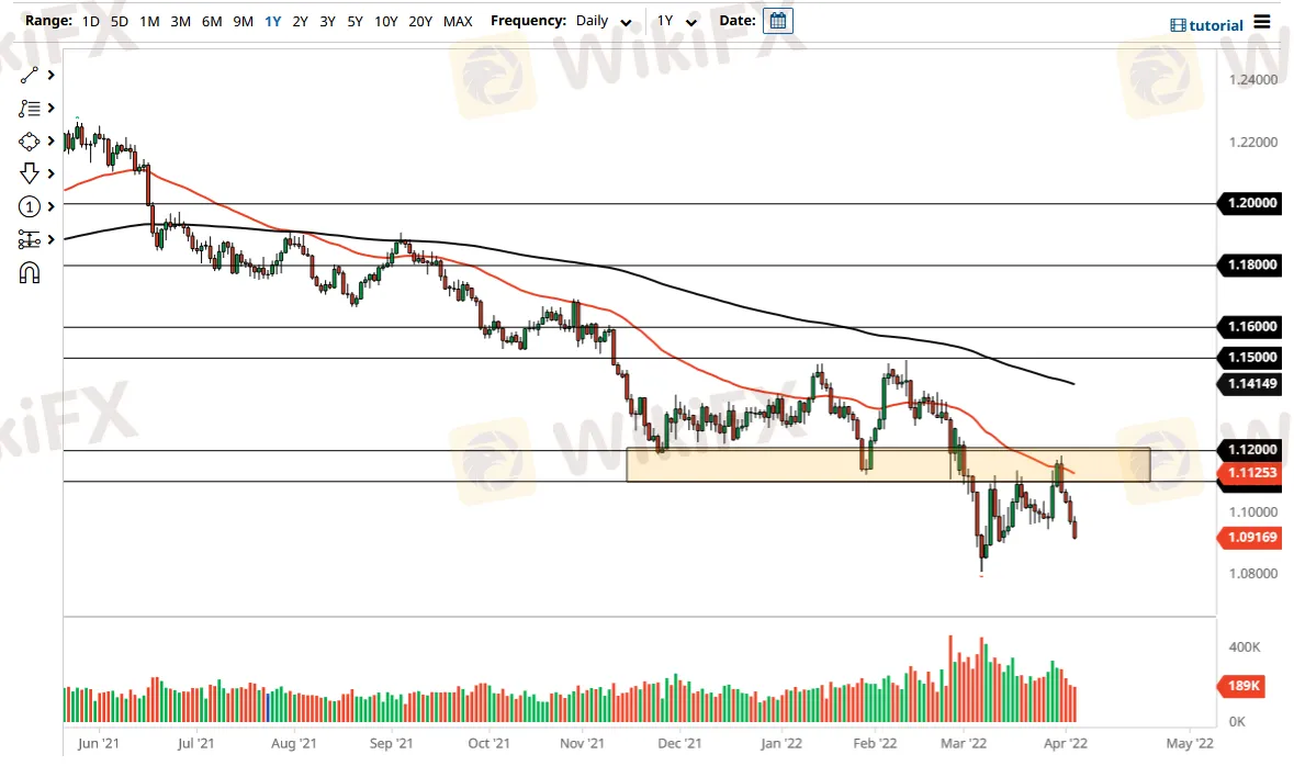 This is a market that I think is going to test the lows, and if we can break down below that area, we may even go as low as 1.07 over the next several weeks. There are a lot of concerns out there when it comes to the European Union as far as inflation and a lack of growth are concerned, especially as energy is simply a major issue. If there is a lack of energy, it all but guarantees that we are going to have a recession in that part of the world.