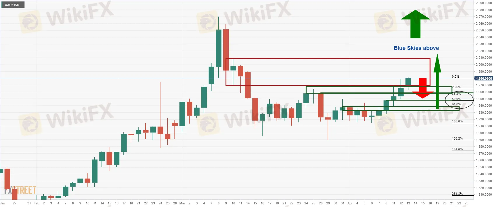 Gold Price bulls will be eyeing a test of the $2000 areas in the near future. However, should a strong US dollar prevail amid further hawkish rhetoric from Fed speakers given their ongoing concerns about US inflation, the $1930s could come under pressure again as this correlates with a 61.8% golden ratio retracement. If that were to give out, the near-term prospects of a move higher will be severely diminished.
