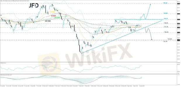 Conversely, when the stock breaks the previously discussed upside line and then falls below the 37.78 hurdle, marked by the low of April 12th, that may signal a change in the direction of the current trend, potentially opening the door towards lower areas. DAL could drop to the current lowest point of April, at 36.18, a break of which would confirm a forthcoming lower low, possibly clearing the way for a test of the support area between the 33.78 and 33.99 levels. Those levels mark the high of March 9th and the low of March 15th respectively.
