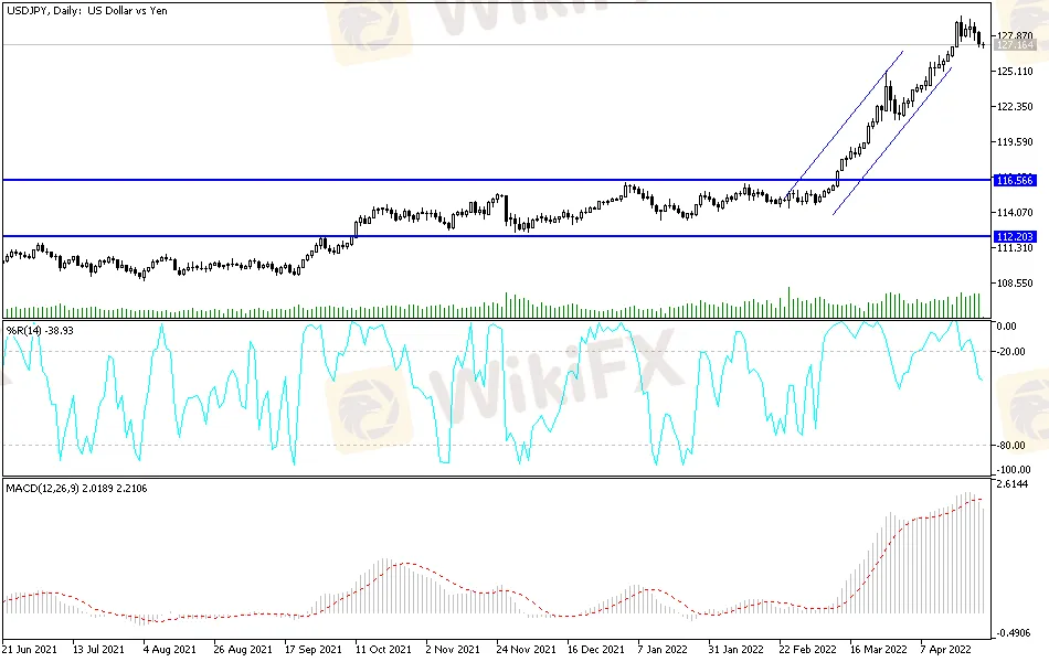 Abstract:Despite three consecutive trading sessions, during which the price of the USD/JPY was subjected to sell-offs, it moved towards the support level 126.92 and settled around 127.20 at the time of writing the analysis. The selling came after the currency pair gained towards the 129.40 resistance level, the highest for the currency pair in 20 years. The recent performance so far, the USD/JPY pair has not come out of its upward trend, which is still supported by strong expectations for the future of raising US interest rates during the year 2022 to face the fiercest global inflation waves caused by the epidemic and recently the Russian / Ukrainian war.