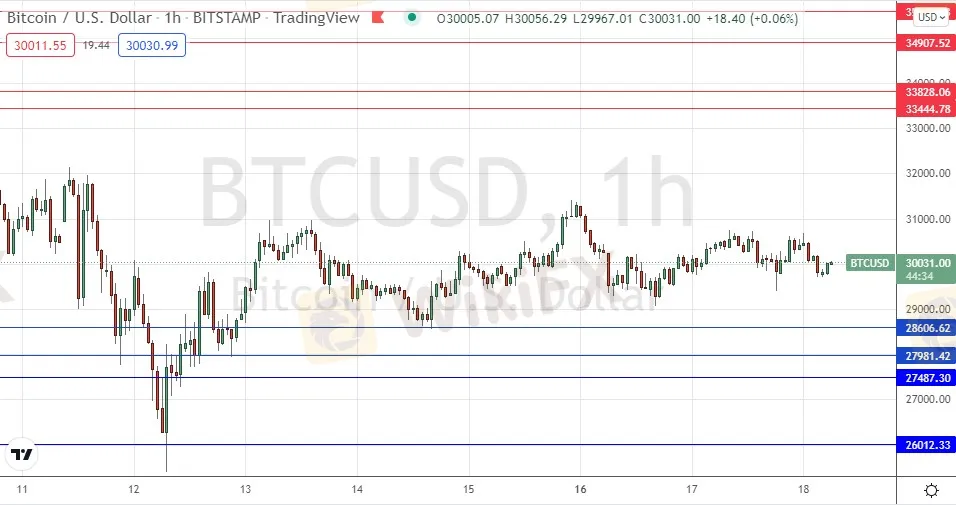 Abstract:The price has room to rise to $33,445. Previous BTC/USD Signal My signal yesterday was not triggered, as none of the key support or resistance levels were reached. Today’s BTC/USD Signals Risk 0.50% per trade. Trades must be entered before 5pm Tokyo time Thursday.