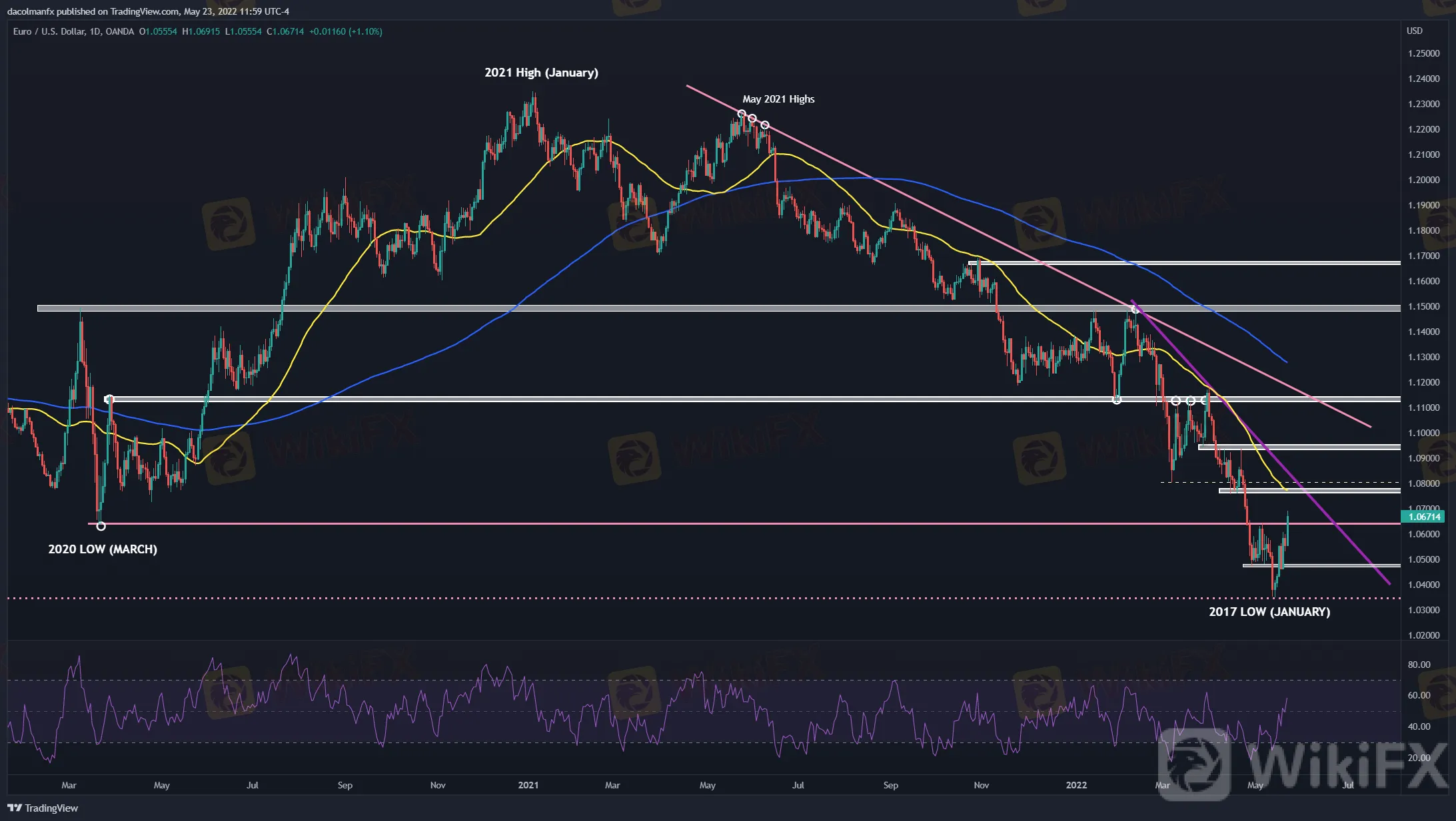 Abstract:EUR/USD soared at the start of the week, rising about 1.1% to 1.0670, supported by improved market sentiment, broad-based U.S. dollar weakness, but more importantly, hawkish comments from the European Central Bank’s President Christine Lagarde.