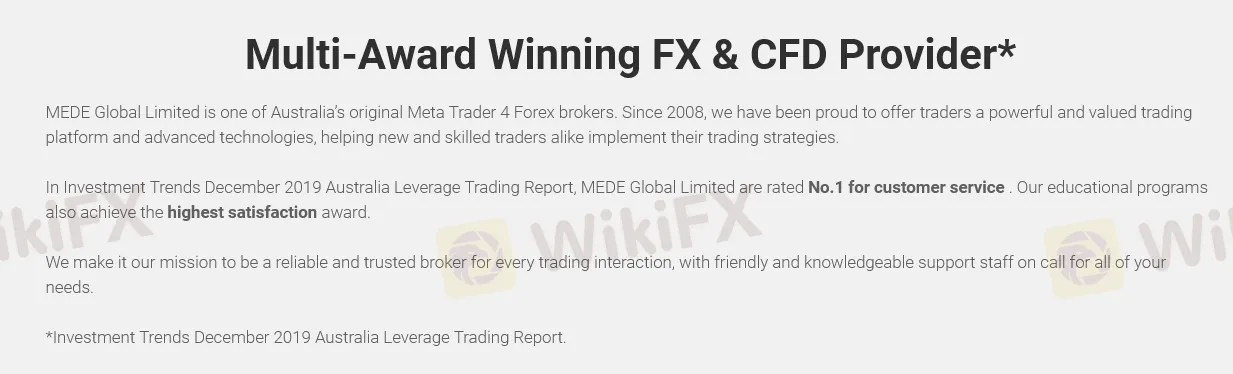 MEDE Global Limited is listed as the owner and operator of Medeforex. There are three versions of where this company is based. The main page of the website claims that it is an Australian broker, with different dates for the start of its activity there – 2006 or 2008. However, a check of the Australian Securities and Exchanges Commission (ASIC) database shows that there is no company by that name licensed as a broker.
