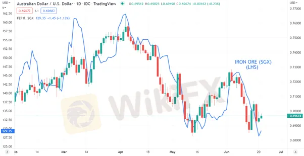 This week, the Australian Dollar is also being hurt by other things. The price of iron ore has dropped, as have the prices of many other industrial metals. Iron ore futures on both the Singapore Exchange (SGX) and the Dalian Commodity Exchange (DCE) are down about 20% from their April highs.