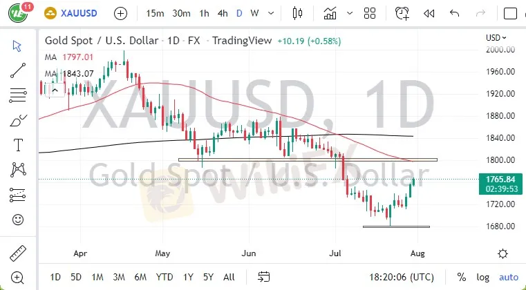 The last three days have been very strong, and therefore I think it shows that there is plenty of momentum. However, the $1800 level is a major area to get above, and I think it would take a lot of effort to clear it. The $1800 level is a major region to pay attention to, so if we were to clear the area, gold really should take.