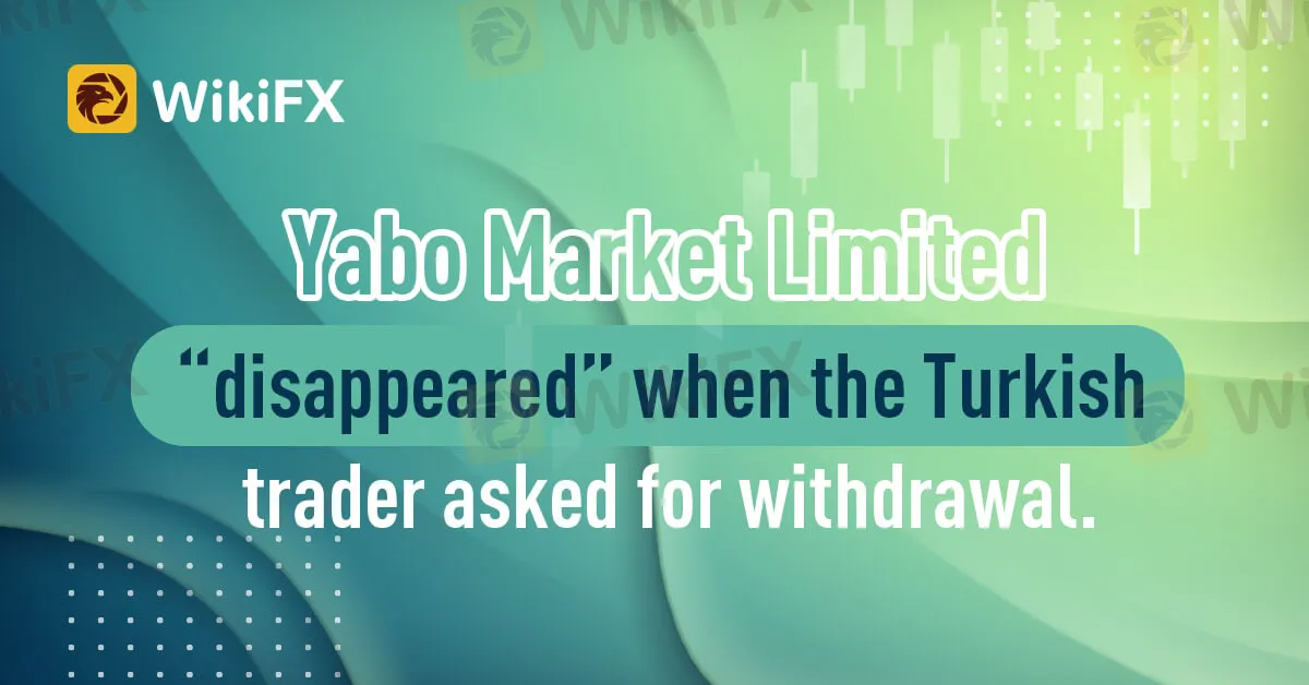 One trader from Turkey told WikiFX that he deposited $224 in Yabo Market Limited. When he tried to withdraw $150, this broker refused the withdrawal. Then the trader wanted to withdraw $100. Yabo Market Limited gave no response. Even worse, the customer service team of this broker was not helpful.