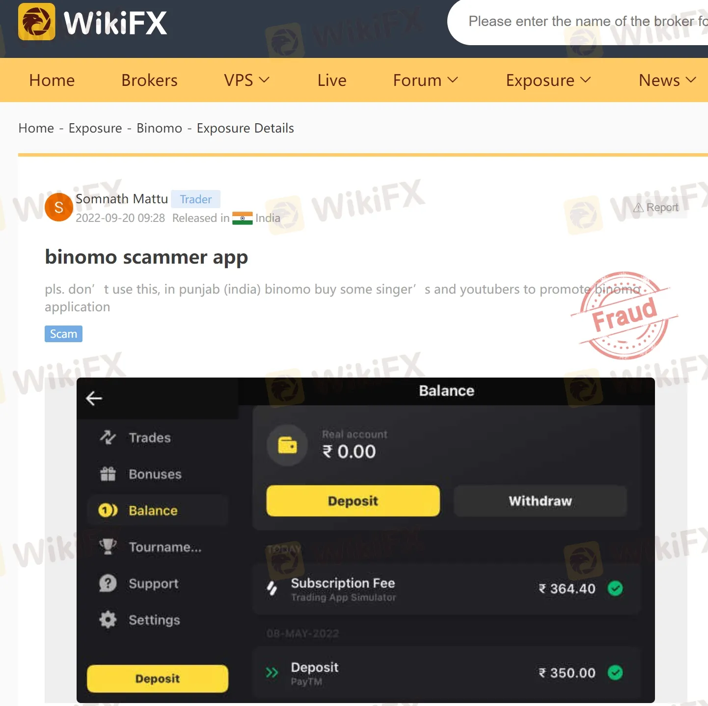Just now, WikiFX received another exposure from an investor in India, who said that the trader could not withdraw money for various reasons with Binomo platform. Here is a screenshot of his remarks.