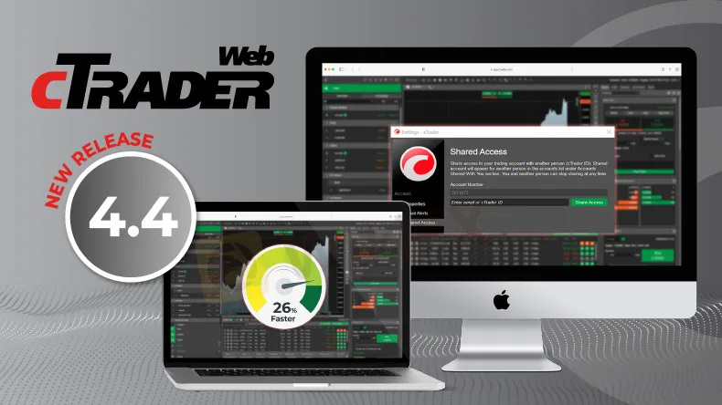 cTrader Web 4.4 has been released by Spotware Systems. To improve users' trading experience, the new version of the online trading platform includes shared access to trading accounts, simple deposits and withdrawals into Demo Accounts, and quicker loading times. Spotware professionals have devised a number of new features to fulfill the demands of both traders and brokers.