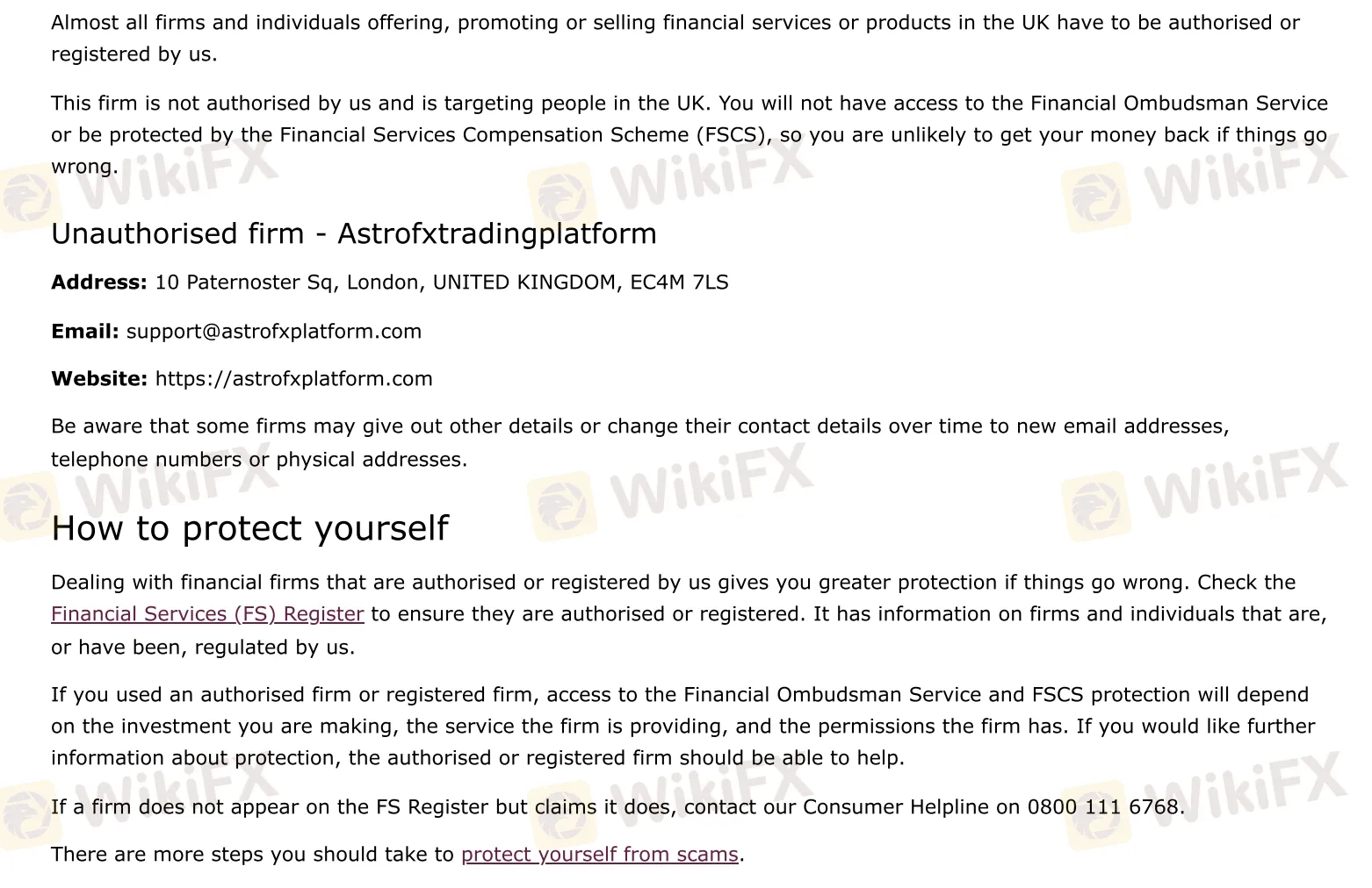 WikiFX Scam Alert: FCA Issued a Warning Against Astrofxtradingplatform!!!