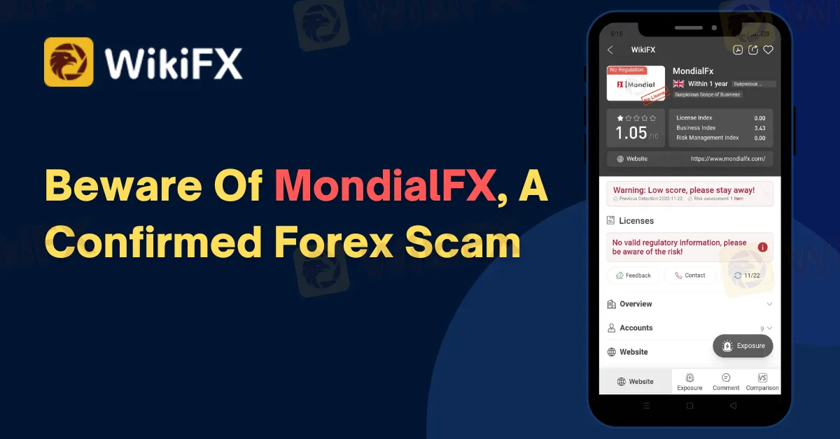 As you can see, according to WikiFX (https://www.wikifx.com/en/dealer/1045672962.html), MondialFX now lacks a legitimate regulatory license and has a low score of 1.01/10! WikiFX assigns a score to brokers ranging from 0 to 10. The higher the score, the more trustworthy the broker.