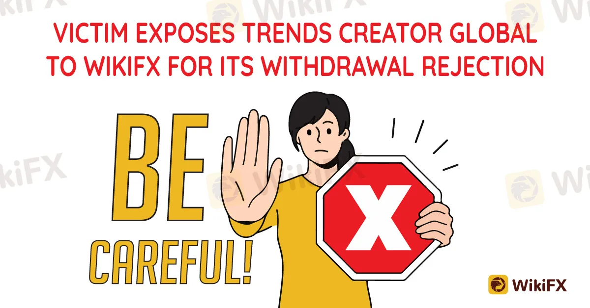 They always use all kinds of excuses to ask the victim to pay. Firstly, the victim made a withdrawal, however, Trends Creator Global told him that he had to pay back the interest-free loan before he could make a withdrawal. Then, the victim paid off the loan and tried to withdraw again, and after a day they told him that because he had a larger withdrawal amount, he would have to pay a 10% pre-authorization fee, which could be withdrawn with the fund. While the victim was preparing the fee, this broker told him that he had to finish paying the fee within another 15 days or they would delete and wipe all funds from the victims account. don't know if this is legal action on behalf of their clients. The victim has no choice but seeks help from WikiFX. We believe that the behavior of this broker is totally unacceptable.