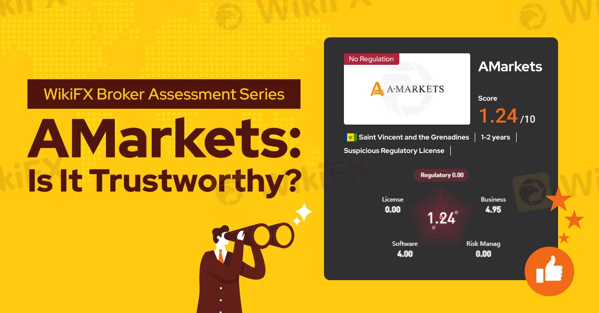 WikiFX, a global forex broker regulatory platform, assigns AMarkets a low WikiScore of 1.24 out of 10, indicating a broker with a high level of underlying risk within the online trading industry.
