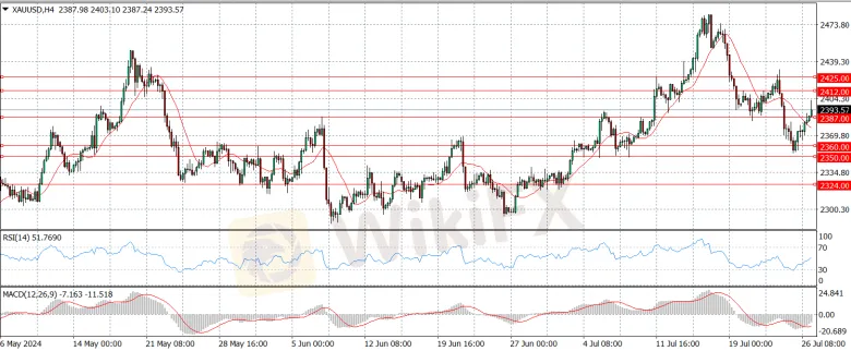 Buyers may find support at the $2,350 psychological level. On the upside, the immediate resistance is the previous 21-day SMA support at $2,387, and a break above that could retest the $2,400 mark.