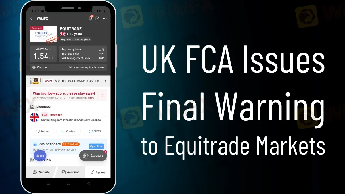In parallel, industry watchdog WikiFX has been aggressively monitoring companies like as Equitrade Markets. The broker presently has a poor WikiFX rating of 1.54, which reflects its lack of regulation and failure to renew its FCA licence. WikiFX's continual efforts to identify untrustworthy brokers give useful information for investors, allowing them to make more educated selections.