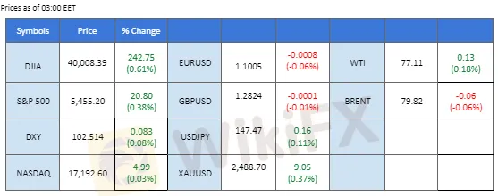 In the commodity market, gold hit an all-time high near $2,480 before strong selling pressure and profit-taking drove prices down by more than 1%. The low inflation reading also dampened demand prospects for oil, applying further downward pressure on prices.