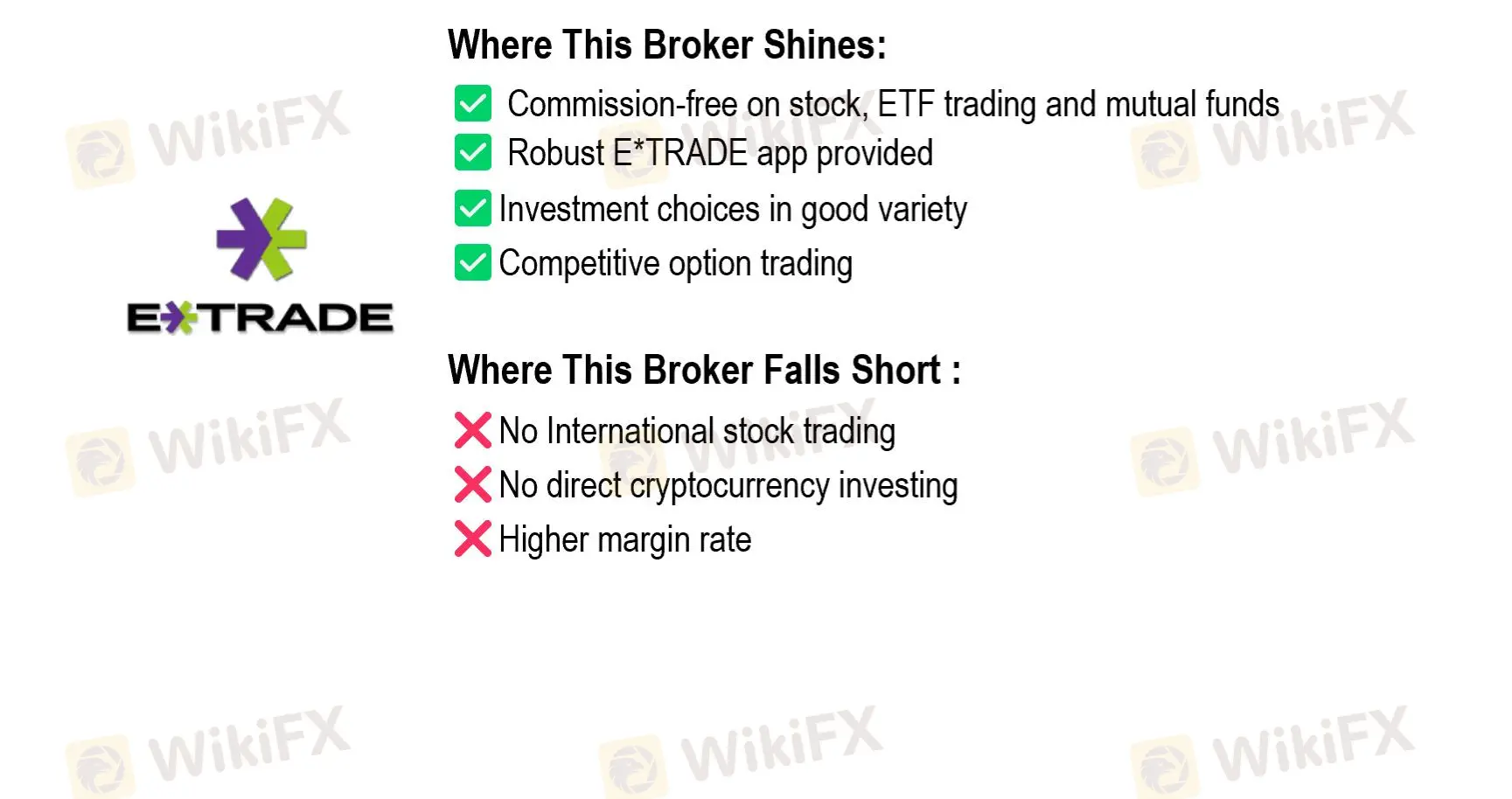E*Trade shines with commission-free stock and ETF trades and comprehensive research tools, it's not without nuanced trade-offs. Its strengths include competitive pricing, feature-rich mobile app, and rich educational resources that targets both novices and seasoned investors. Conversely, some drawbacks emerge in higher options contract fees, limited international stock trading, and account maintenance charges for smaller balances. Overall E*Trade represents a solid, though not perfect, online trading solution in a competitive marketplace.