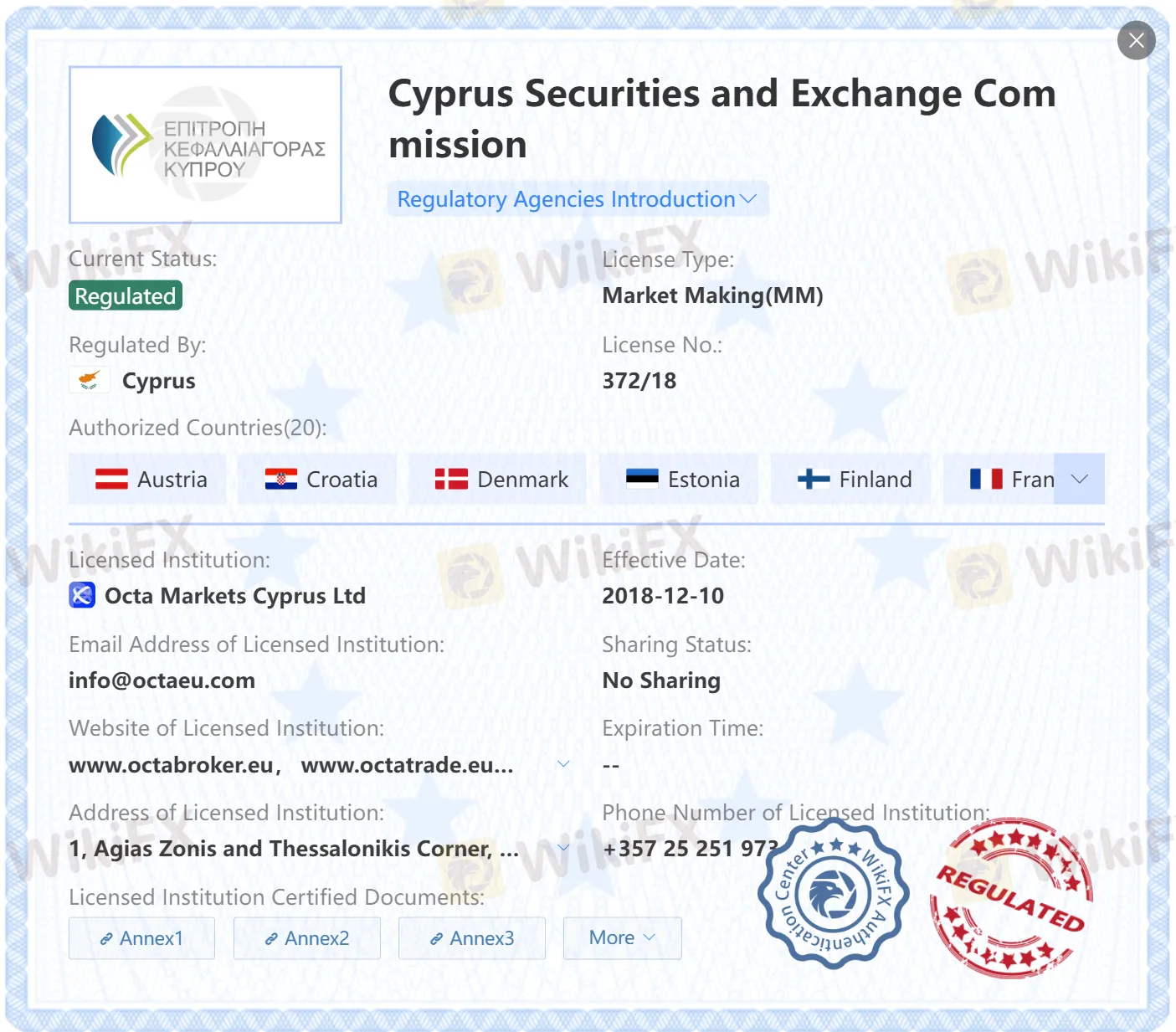 | Regulation | Regulated (CYSEC) |