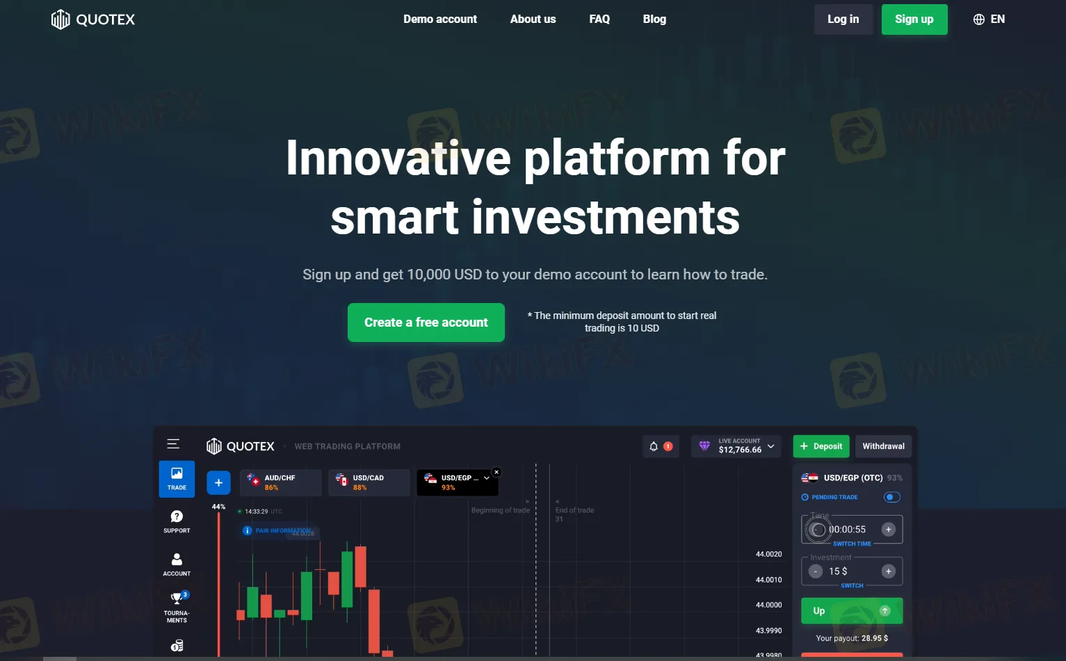 On the other hand, QUOTEX also offers a demo account with $10,000 in tradable funds, allowing traders to practice their skills and familiarize themselves with the platform's features and tools before risking any real money. The demo account provides a simulated trading environment with virtual funds, enabling users to test different strategies and learn from their trades without any financial risk.