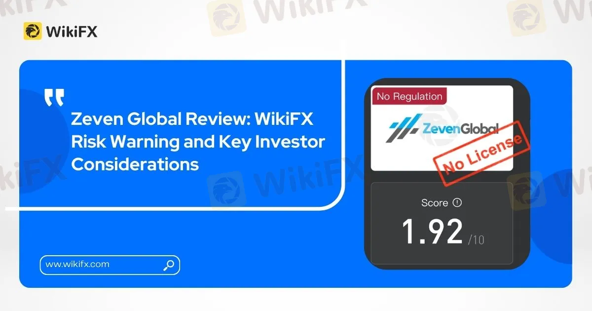 Abstract:A WikiFX review of Zeven Global reveals the absence of regulatory licensing, a low safety rating, and potential risks to investor protection.
