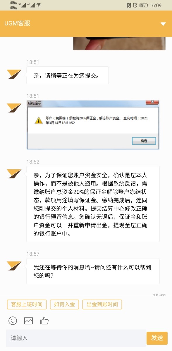 无法出金,说信息填写错误,要让人交保证金。出金之前都检查过了。怎么可能错误