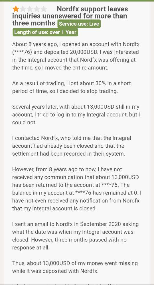 A client of NORDFX has complained that $13000 has disappeared from his account and when he emailed this issue to NORDFX, they did not respond. He advised others not to invest in NORDFX as their behaviour is unprofessional.