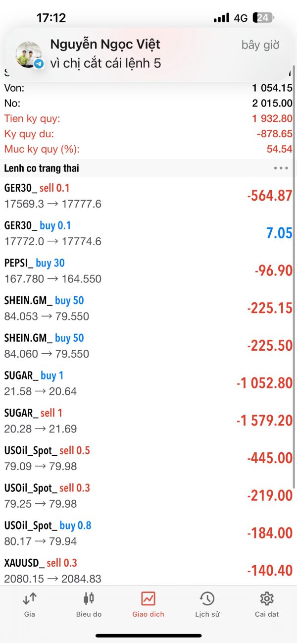 chúng nó gạ gẫm lùa gà, cho nhà đầu tư thắng đc ít, ko rút đc tiền, tự ý vào lệnh lớn làm cháy tk nhà đầu tư, ép nhà đầu tư vào vốn để cứu cháy, khi nhà đầu tư ko đủ lực để vào, nó chặn hết mọi liên lạc, sàn lừa đảo thất, ai gặp sàn này lé thật xa nhé, kẻo mất tiền oan