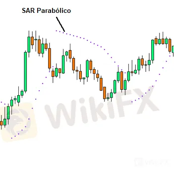 Un SAR parabólico coloca puntos en un gráfico que indica posibles reversiones en el movimiento de precios.