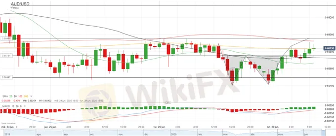 Gráfico 1-hora AUD/USD (24 junio – 29 junio 2020)