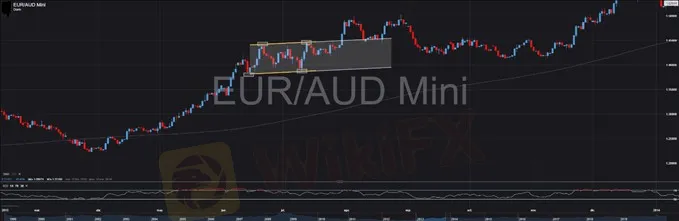 RECONOCER UNA RUPTURA DE UN CANAL DE PRECIOSPrimero, trate de identificar un claro canal de precios existente. El ancho del corredor no importa, pero debe exhibir algún tipo de ángulo ya sea alcista o bajista (inclinado hacia arriba o hacia abajo). Busque que el precio rebote con éxito sobre la línea superior e inferior del canal al menos dos veces para crear un canal legítimo. A continuación, analizamos un canal de precios en el gráfico diario del EUR/AUD.