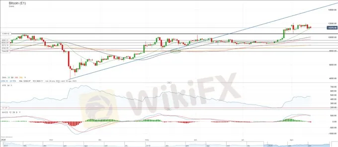 Tras haber conquistado la barrera de los 10.000 dólares a finales de julio, Bitcoin se topa ahora con una nueva resistencia en los 12.000$, con un máximo a corto plazo en los 11.600$.