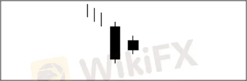 Este patua es una señal de disparidad ya que en un mercado caracterizado por la tendencia bajista, primero vemos la fuerte venta reflejada por el largo cuerpo negro del primer día donde las fuerzas bajistas creen haber asentado su posición de dominio. Sin embargo al aparecer el pequeño cuerpo negro del segundo día con hueco al alza hacen dudar y disminuyen el entusiasmo de las fuerzas bajistas y que se pudiera estar sugiriendo un cambio de la tendencia previa bajista.