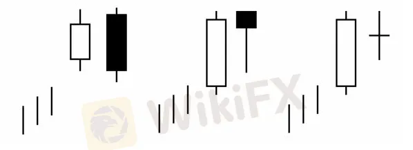Asi por ejemplo tendremos Una vela larga blanca seguida por un “doji” haciendo máximo iguales ambos, sería el equivalente a un “Harami Cross Bearish” con sus implicaciones bajistas.