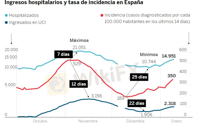 El 24 de diciembre, mientras España se preparaba para celebrar las primeras Navidades bajo la pandemia, los hospitales registraban un cambio que condicionará la vida del país durante al menos un par de meses. Después de 44 días en descenso tras el pico de la segunda ola, los ingresos volvían a superar a las altas en el conjunto del país. Dos semanas más tarde de que los contagios empezaran a subir pasado el puente de la Constitución, la tercera ola llegaba a los hospitales por Navidad.