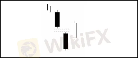 La pauta se caracteriza por dos candlesticks negros largos con un gap a la baja entre ellos durante una tendencia bajista formando un “Falling Windows”. El tercer día es un candlestick blanco, que cierra el gap a cierre de mercado. La vela blanca del tercer día se puede entender como una intento de toma de control en forma de rebote por las fuerzas alcistas que hace llevar el precio hasta la resistencia del Gap.