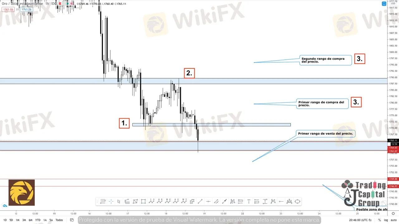 1. Teniendo en cuenta que el precio puede buscar completar un buen retroceso dentro del mismo rally bajista, se determina este nivel como una zona adecuada de entrada en busca de compras.