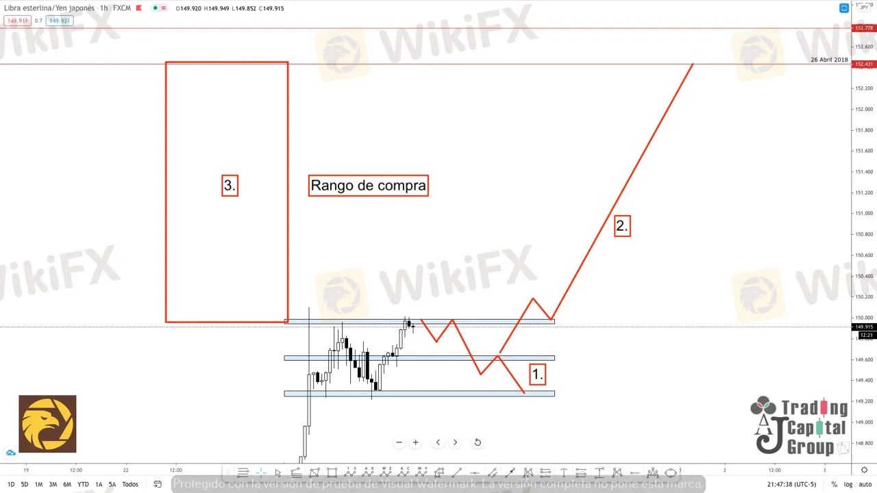 El par esta creando un punto de distribución dentro del rango de los 150.000 lo que podría desembocar en la posibilidad de crear buen sea un punto de venta importante por debajo de la zona (1) o convertirse en un punto de participación alcista llevando el precio hasta los 152.431 cubriendo por completo el rango de compra (3) cuyo beneficio se haya en que no tiene un trafico de velas importante que frene el precio durante si rally alcista. Lo mas conveniente será mantener una proyección abierta entra las zonas (1) y (2).