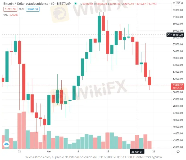 Bitcoin ha caído de 58.000 dólares a USD 51.000 en los últimos días.