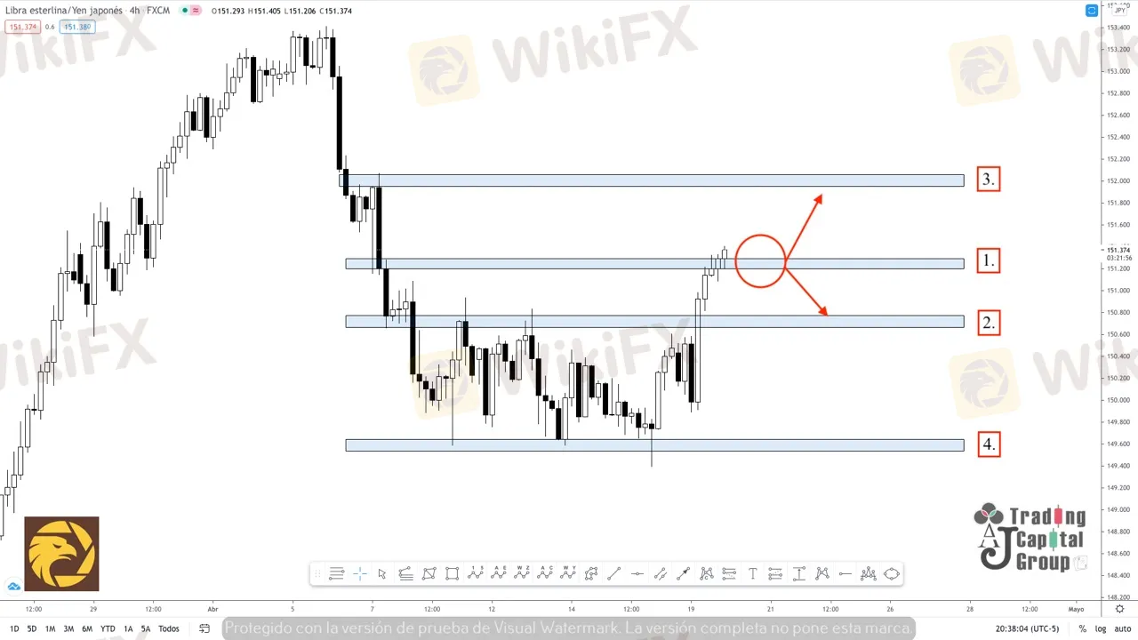 3. Sin embargo, de conservar la estructura de compra del precio y consolidar un patrón de compra durante los próximos días. El precio podría, culminar su trayecto en este nivel, dado a que no hay un trafico importante de velas que impida al precio llegar hasta la zona de los 152.000 (3).