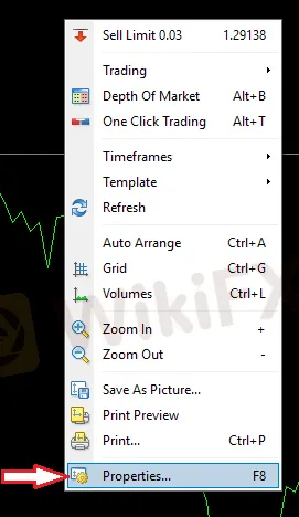 Para personalizar o cambiar la apariencia de los gráficos, presione F8 o haga clic con el botón derecho en el gráfico, luego seleccione “Propiedades” como se muestra en la imagen siguiente.