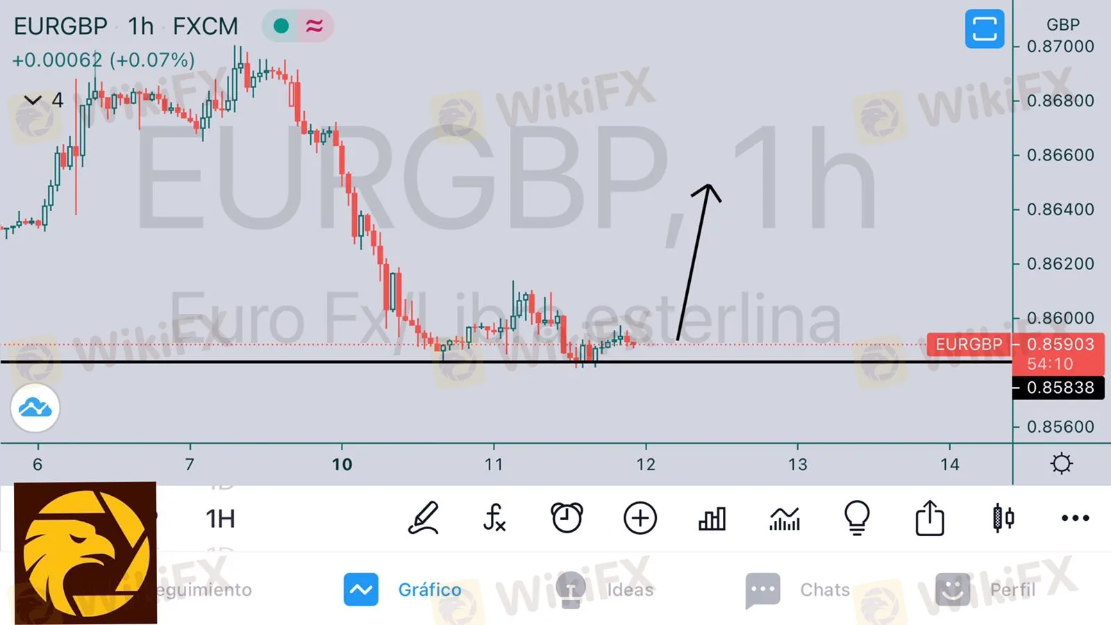 EURGBP podemos ver una zona de soporte generando un rechazo con un doble piso, podemos buscar compras a partir del precio 0.85918