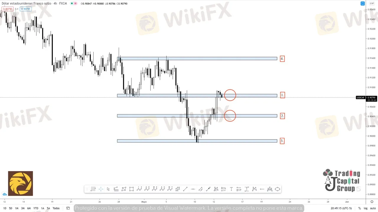2. De consolidarse un nivel de participación bajista, el precio podría recorrer esta zona de venta hasta los 0.90400 teniendo en cuenta que no hay un trafico importante de velas que le impida al precio asegurar su movimiento de venta.
