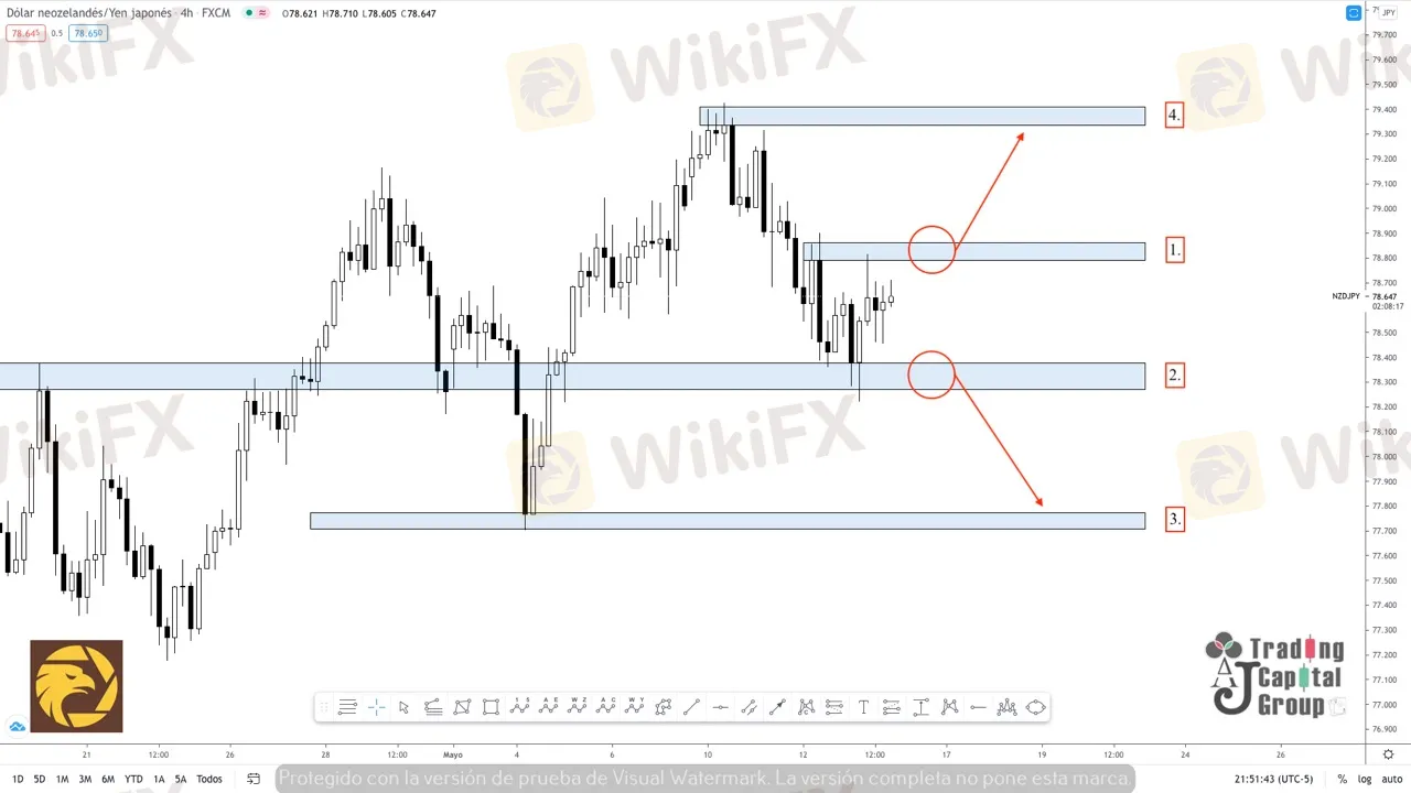 4. Como rango de distribucion importante, esta zona podría consolidarse dentro de los próximos días, como un nivel de participación alcista importante creando un espacio de compra ideal siempre y cuando el precio rompa por encima de los 78.800 (1)