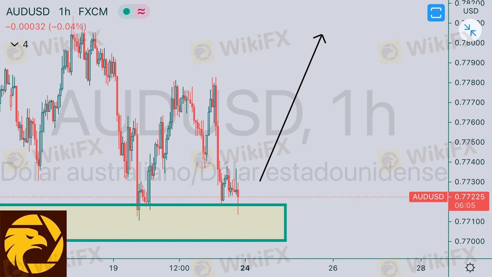 AUDUSD vemos otro par en rango lateral el precio indeciso puede brindar oportunidades en confluencia en este caso buscaremos comprar a partir del precio 0.77202