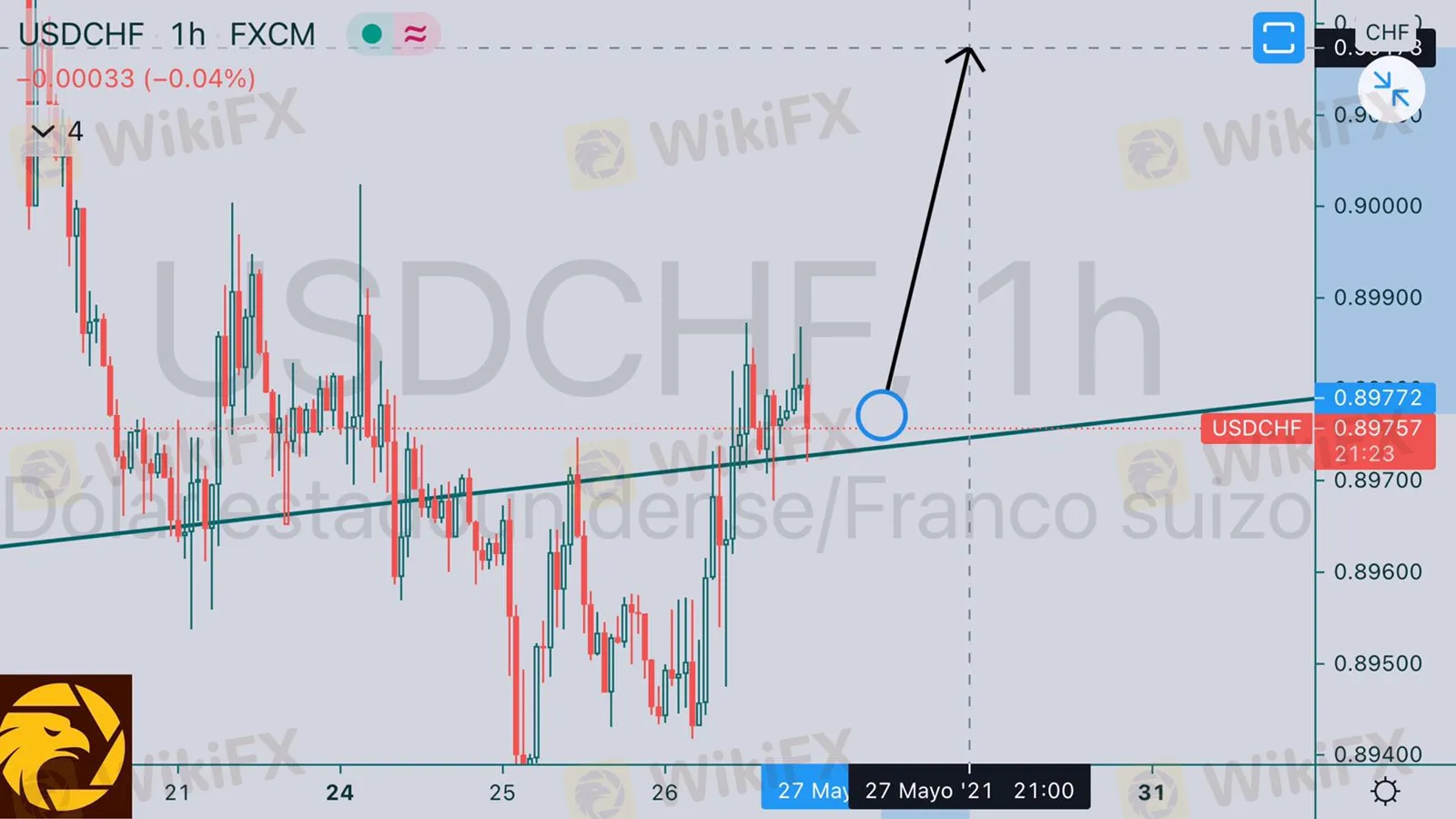 USDCHF Vemos como el precio nuevamente busca soporte lateral en línea de tendencia podemos buscar compras a partir del precio 0.89772 con un Stop loss no mayor a 40 Pips